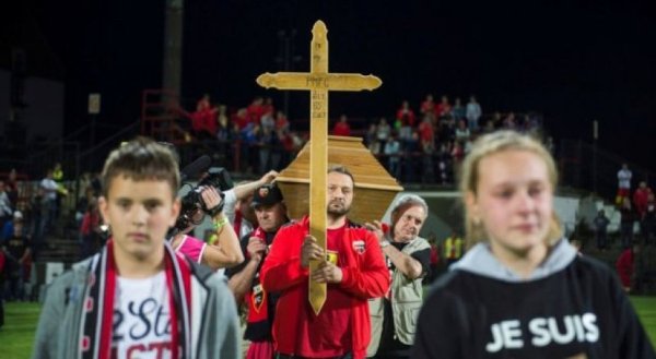 Të pakënaqur me Federatën e Futbollit të Hungarisë, tifozët e klubit Pesci MFC, të mbështetur nga Sindikata e futbollit hungarez, kanë kryer aktin e varrimit të kësaj Federate.