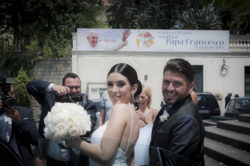 Ishin të shumtë kuriozët të cilët prisnin dalje e çiftit nga kisha e Capodimonte, ku u mbajt martesa. Të ftuarit ishin të shumtë, por ajo që ra në sy ishte mungesa e babait të dhëndrit, Diego.