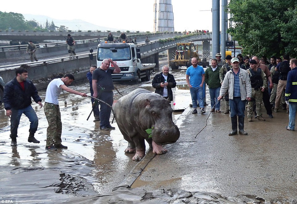 Në mesin e kafshëve që kanë ikur gjatë vërshimeve ka luanë, tigra, arinj, hipopotamë dhe ujqër.