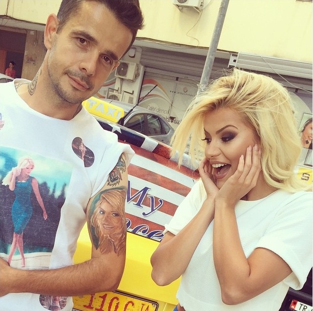 Marina ka publikuar një fotografi ku ka mbetur e befasuar, nga takimi me fansin e saj i cili mban veshur edhe një bluzë ku është stampuar fotografia e saj, ndërsa në krahë tatuazhi ku projektohet fytyra e bukuroshes së ekranit./a.y/noa.al Një fans bën tatuazh në trup me fytyrën e Marina Vjollca