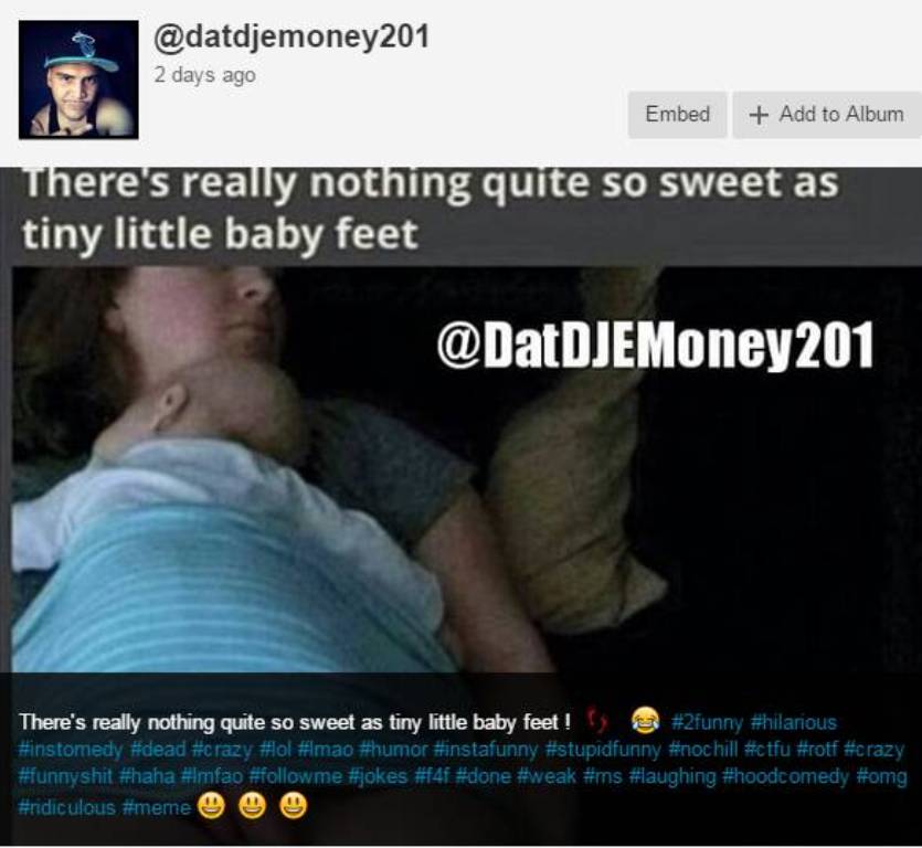Burri e publikoi fotografinë në sajtin Imgur ku shkruante: “Nuk ka gjë më të ëmbël se këmbët e një fëmije”.