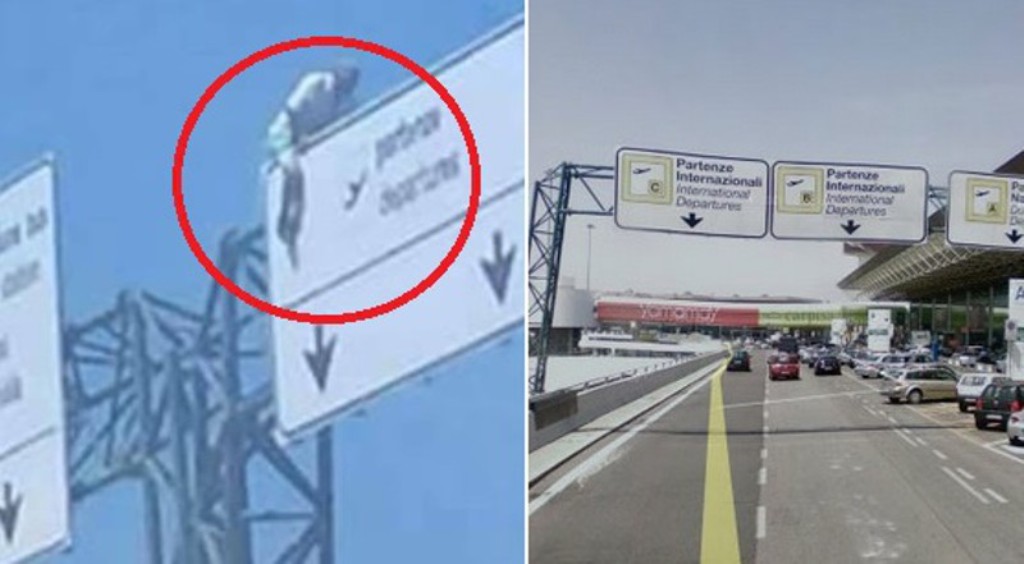 Burri 55 vjeçar, është gjendur në autostradën që të çon në aeroportin e Fiumiçinos në Romë, dhe ka hipur mbi tabelat pikërisht përballë Terminalit 1.
