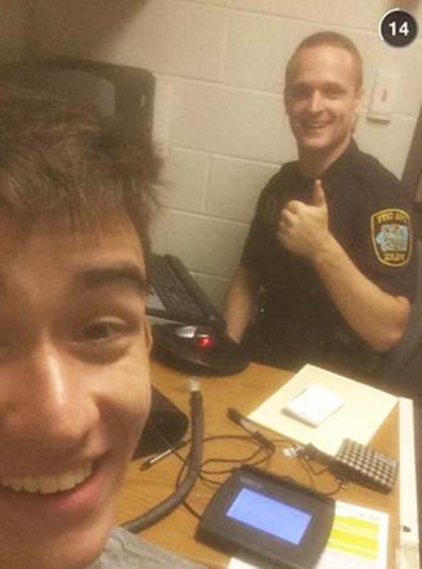 I riu i kërkoi agjentit që e ndaloi gjatë natës në Iowa City të Shteteve të Bashkuara të Amerikës, një fotografi madje polici bëri edhe shenjën “Ok” me gisht.