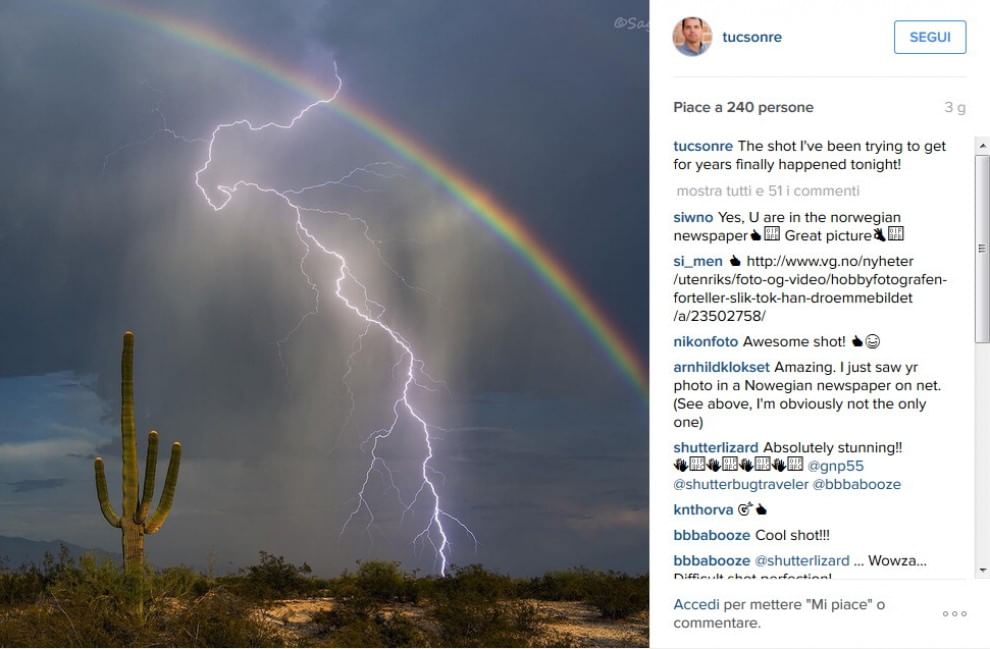 Efekti është vërtetë mbresëlënës, në të njëjtën fotografi shihet ylberi me rrufenë. Një spektakël i fiksuar pranë Marana, qytezë në Arizona të SHBA, nga një shitës imobiliar me një pasion të madh për fotografinë, Greg McCown, i cili prej shtatë vitesh gjurmonte një moment të tillë.
