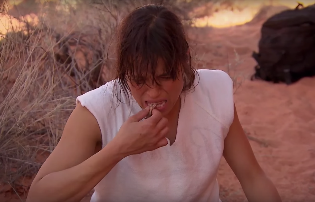 Pasi kaloi shkretëtirën e Nevada dhe mbeti pa ujë dhe ushqim për dy ditë, aktorja duhet të hante një vakt me mi të pjekur në urinën e saj.