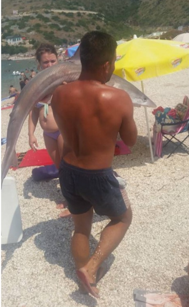 Të surprizuar nga peshkaqeni i kapur, pushuesit nuk kanë kursyer as fotografitë me të./a.y/noa.al