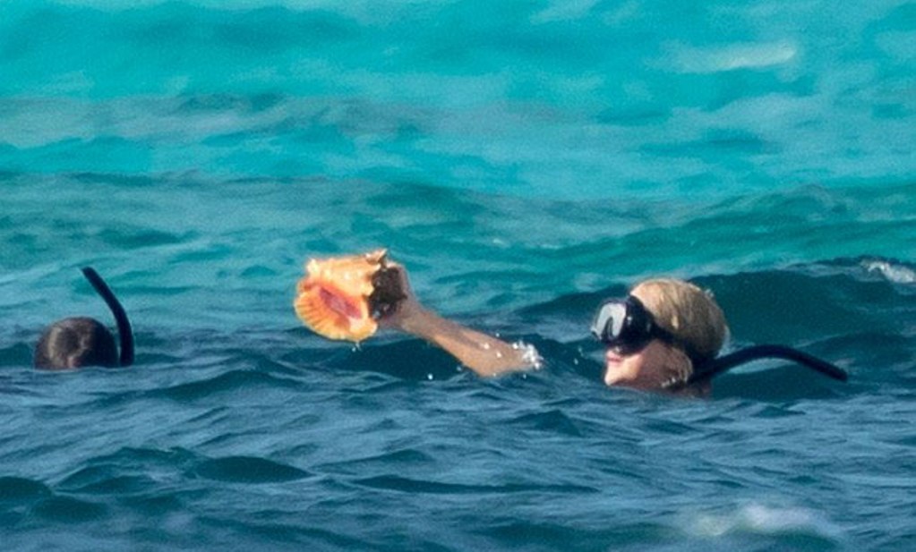 DailyMail ka publikuar fotot ekskluzive të aktores, teksa ndodhet në pjesën e pasme të varkës, për tu zhytur më pas në ujërat e oqeanit duke eksploruar për guacka Conch, një kërmill deti delikat i zonës.
