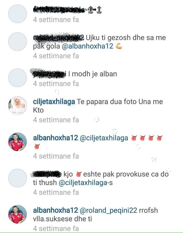 A është vërtetë vetëm miqësi mes portierit të Partizanit apo ka diçka më tepër në këtë mes?! Ndjekësit në rrjetet sociale nuk mendojnë kështu, shkruan panorama. Ata kanë dërguar foto për “Panoramën” ku kanë treguar komentet e shkëmbyera mes Çiljetës dhe kapitenit të të kuqve. Kujtojmë që këngëtarja dhe nëna e një djali, ka thuajse një vit që është ndarë nga bashkëshorti.