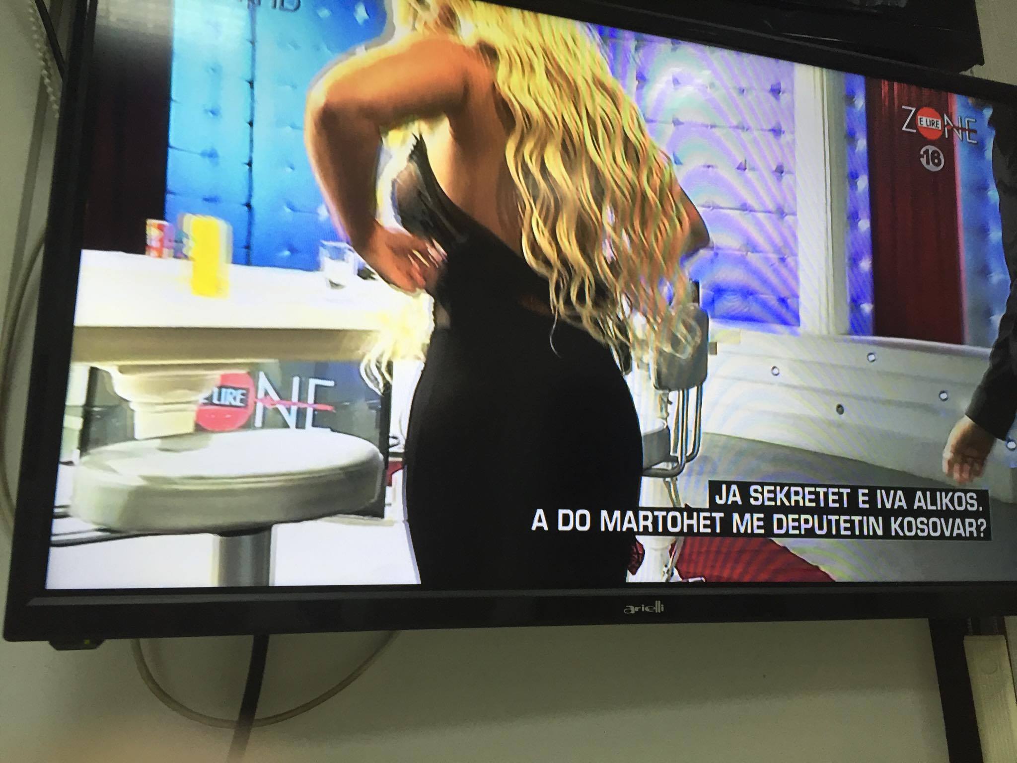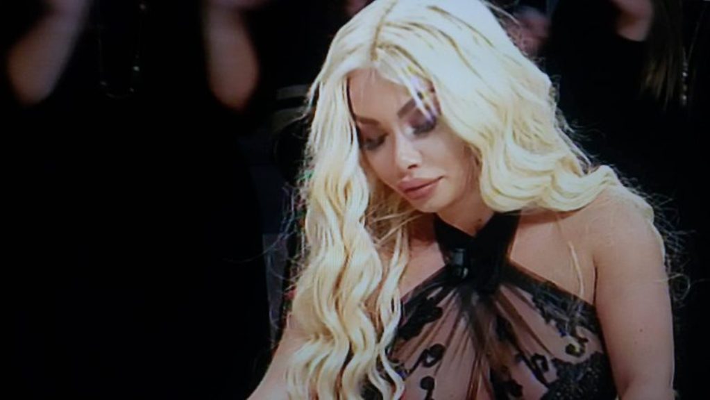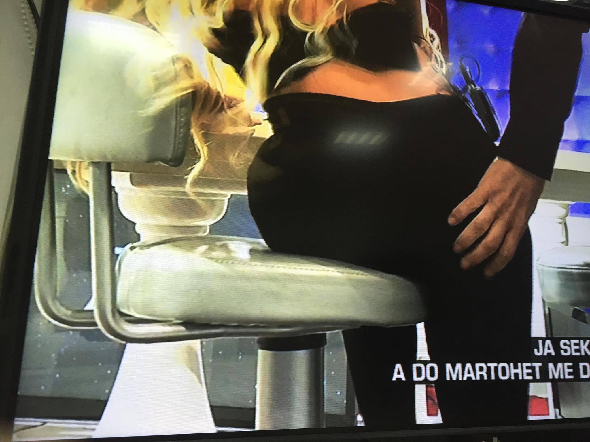Ajo është shfaqur nudo në fotografi të zbuluara enkas në emisionin e Arian Çanit, i cili u mahnit natyrisht nga këto pamje, ku gjoksi bombastik i bjondes u shfaq transparent në ekran.