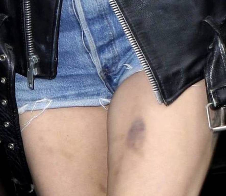 Ajo u fotografua në dalje të apartamentit të saj në New York, e veshur me xhinse të shkurtra, ku këmbët e saj dukeshin me shenja të nxirash.
