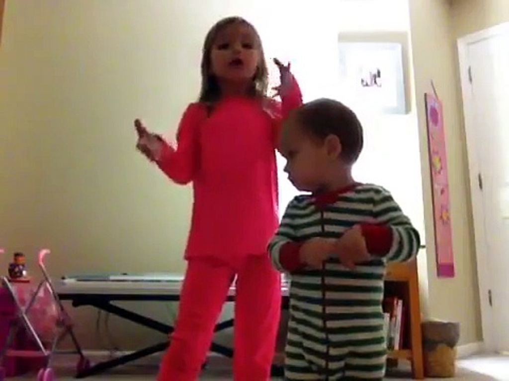 Ajo filmohet duke kërcyer këngën e njohur “Watch Me” të Silento, shkruan noa.al. Edhe vëllai i vogël ndjek gjurmët e së motrës dhe kërcen me të.