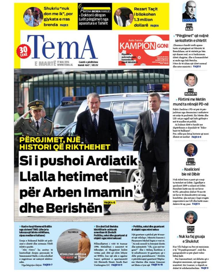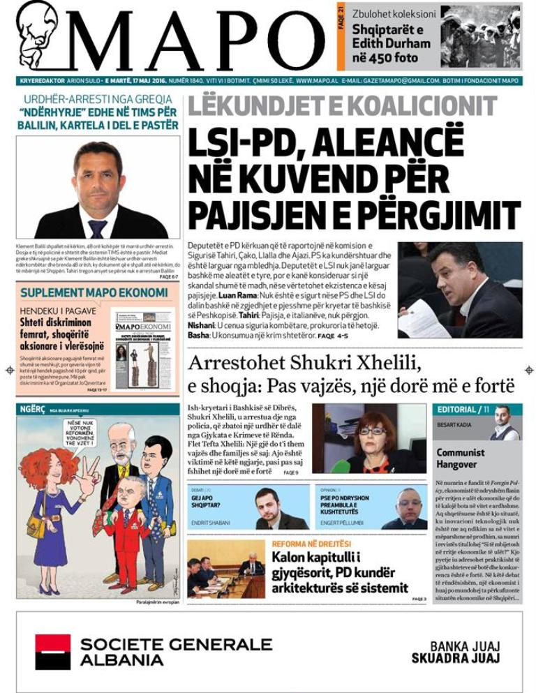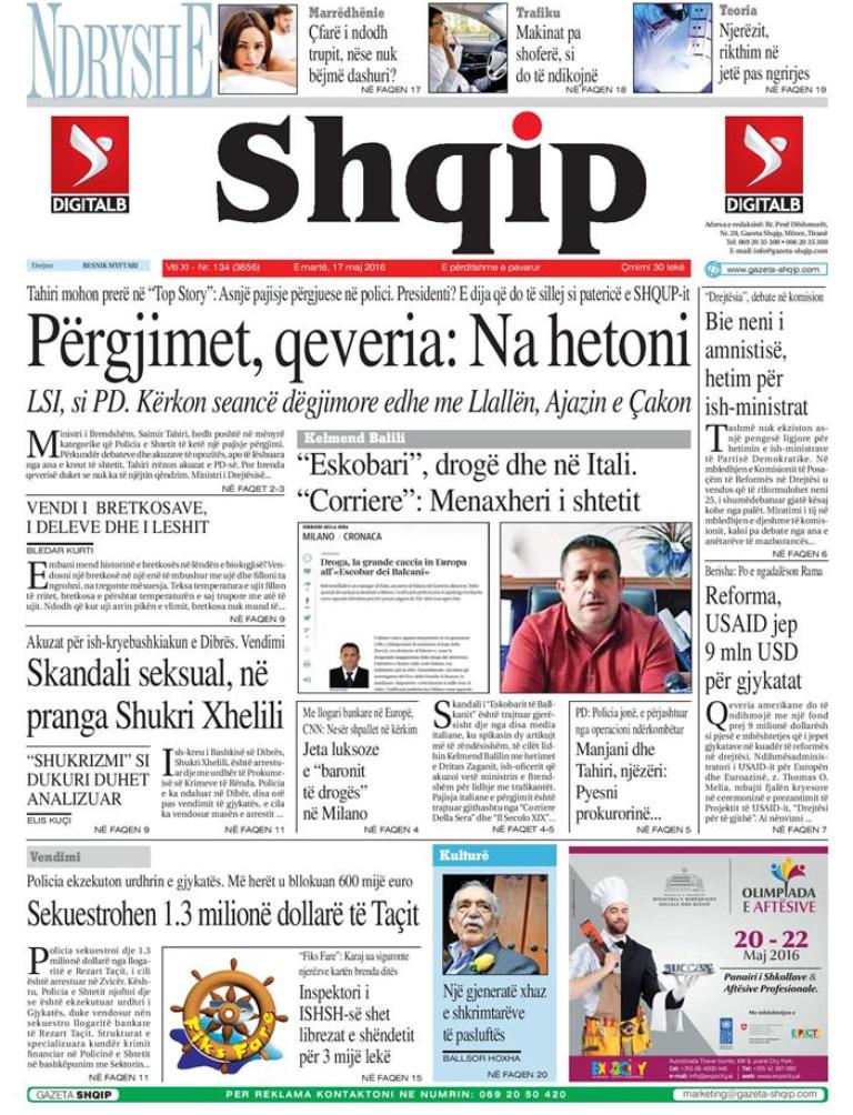 Të nderuar lexues, kjo është një pasqyrë e faqeve të para të disa prej gazetave kryesore, për ditën e martë, 17 maj 2016.