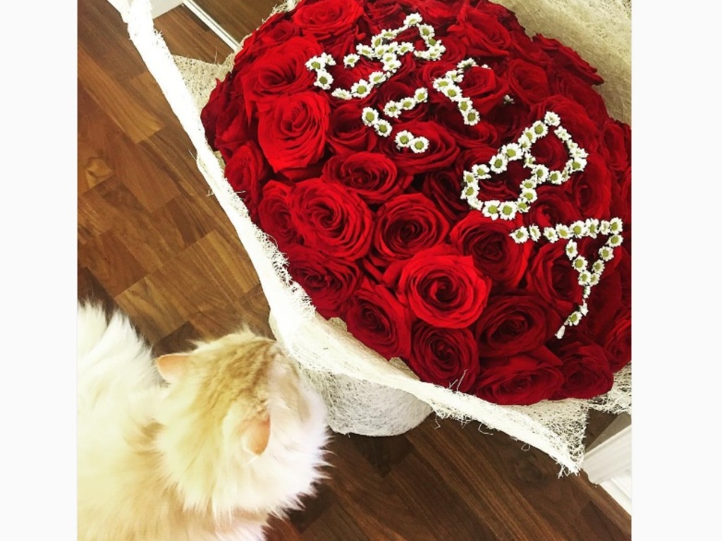 Një buqetë me trëndafila, ku sipër shkruhej me lule të bardha “Beba”. Ky dedikim është pëlqyer shumë nga Besa, e cila e ka publikuar foton në Instagram.
