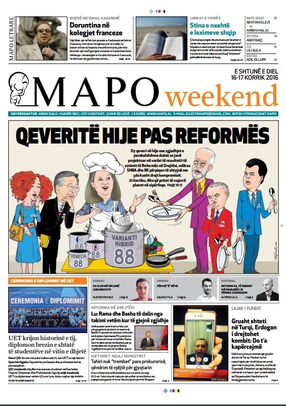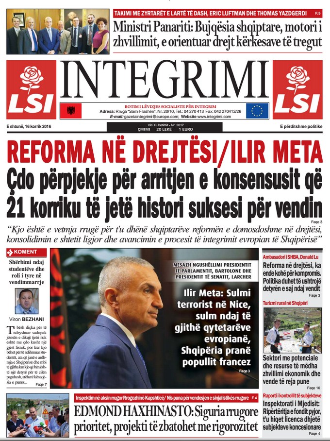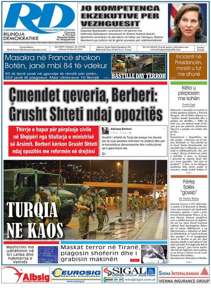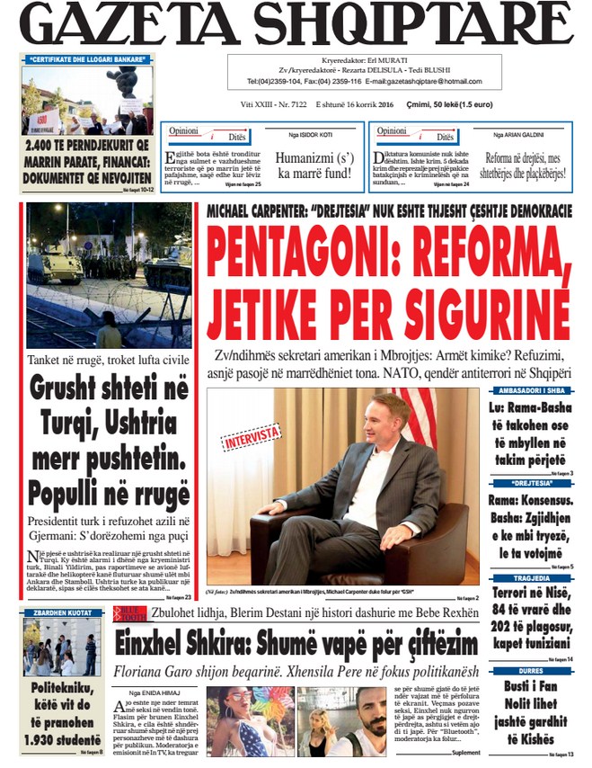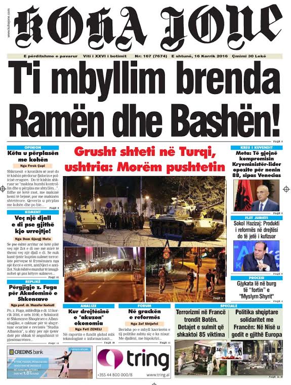 Të nderuar lexues, kjo është një pasqyrë e faqeve të para të disa prej gazetave kryesore, për ditën e shtunë, 16 korrik 2016.