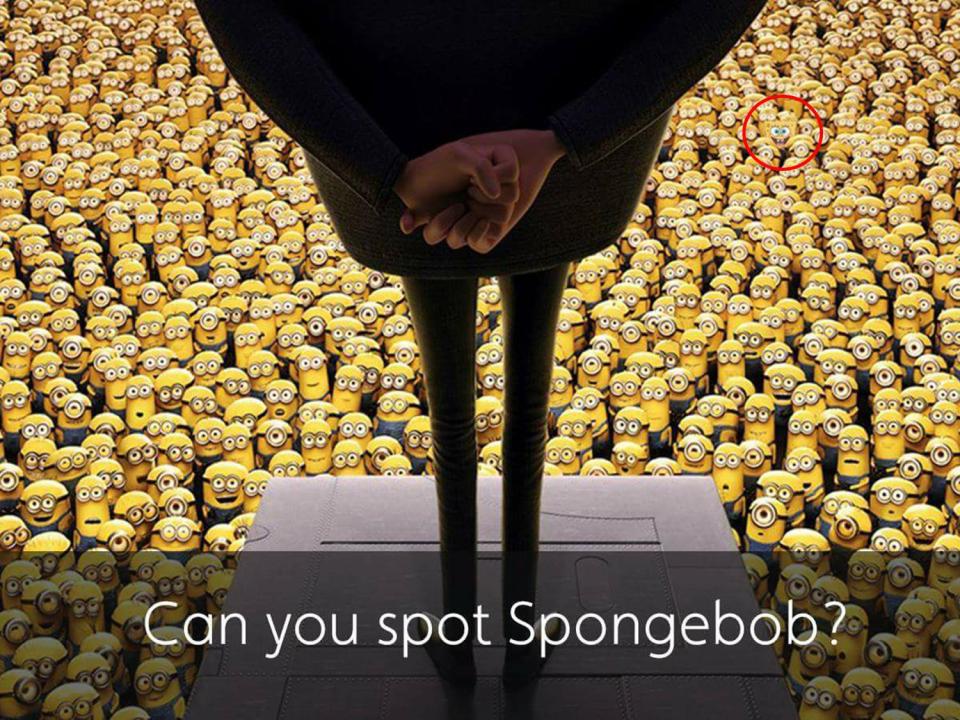 Lojërat e mprehtësisë së shikimit janë gjithmonë zbavitëse. Në këtë foto a arrini të gjeni dot mes një deti minionsash figurën mjaft të dashur për fëmijët, SpongeBob?
