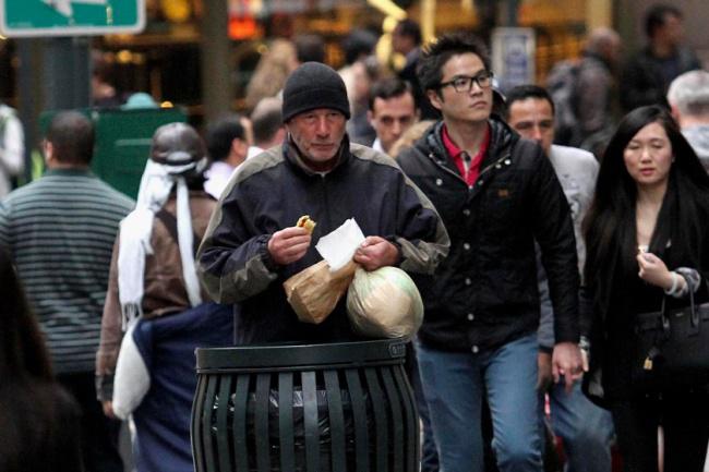 Duke mos e njohur atë, ajo i ofroi atij një copë picë. Ajo ishte duke ecur në qytet me partnerin e saj dhe djalin 15 vjeç kur pa një burrë duke gërmuar në mbeturina.