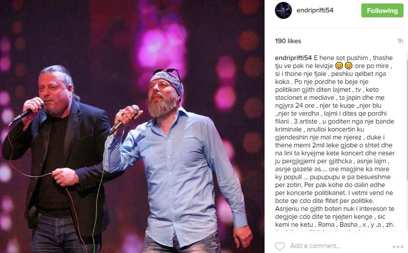 Postimi i plotë i këngëtarit Endri Prifti në Instagram:
