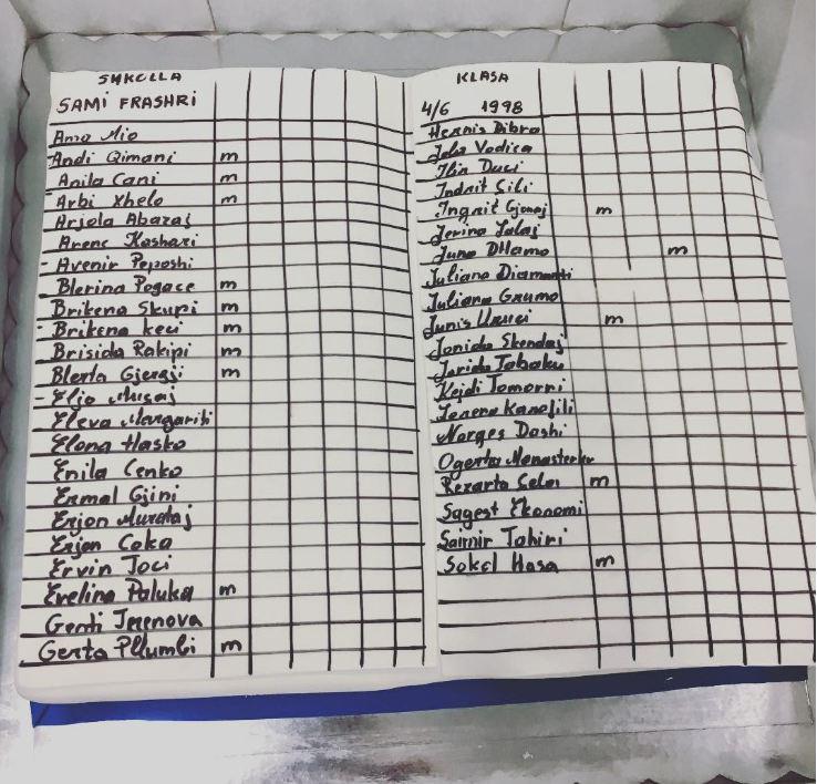 Në një atmosferë të ngrohtë, të shoqëruar edhe me një tortë me emrat e gjithë klasës, ku shenja “m” tregonte mungesën e atyre që nuk ishin në takim, ministri për pak orë ka lënë mënjanë petkun e ministrit të kabinetit qeveritar.