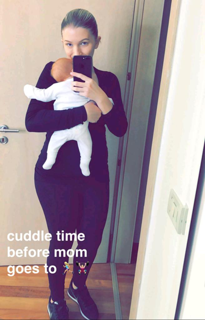 Mëngjesin e sotëm ajo ka publikuar në Snapchat një fotografi me të birin në krahë, ku shihet se Londoni i vogël është rritur disi.
