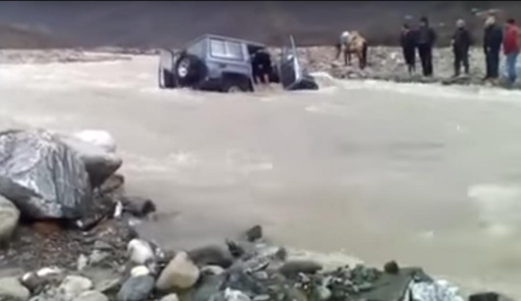 Për fat mjeti nuk është përmbysur pasi mund të kishte shkaktuar një tragjedi. Të 5 banorët e fshatit janë hedhur në përrua dhe kanë dalë në anën tjetër të tij.