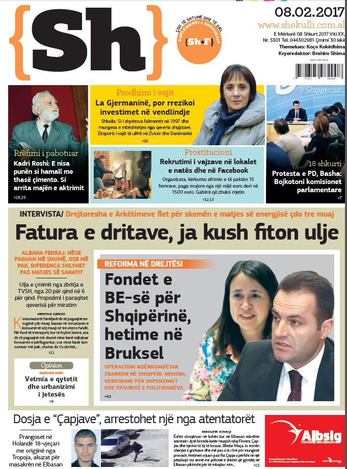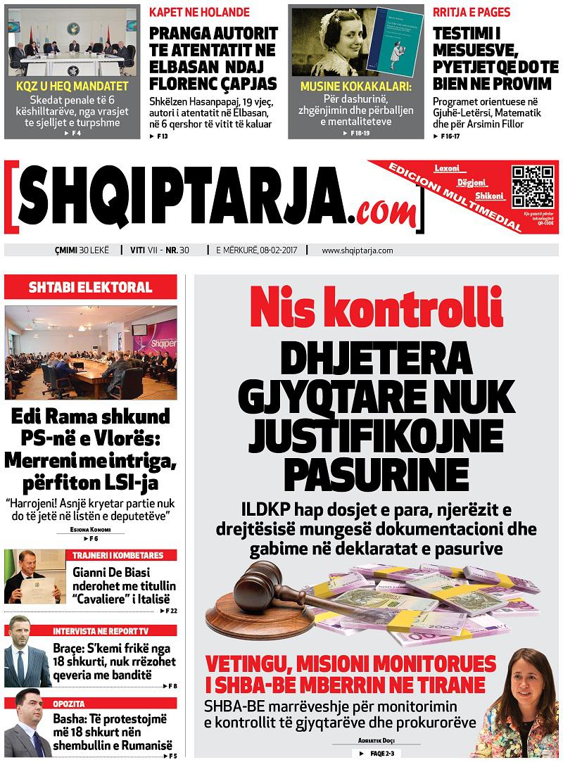 Të nderuar lexues, kjo është një pasqyrë e faqeve të para të disa prej gazetave kryesore, për ditën e mërkurë, 8 shkurt 2017.