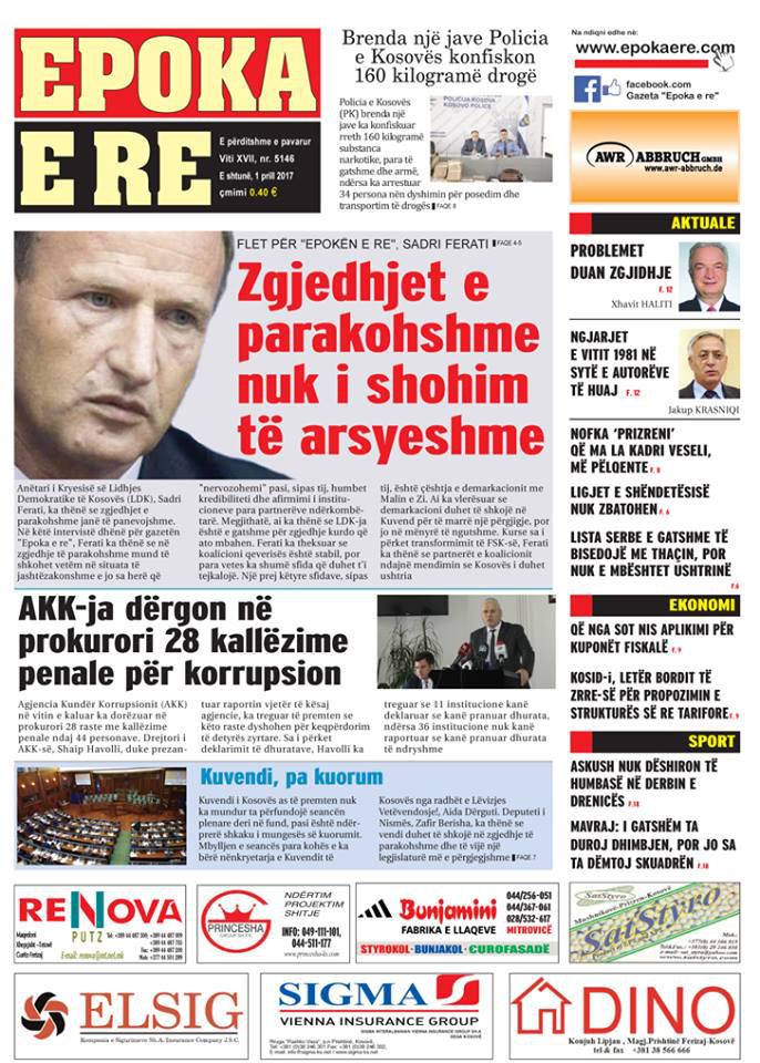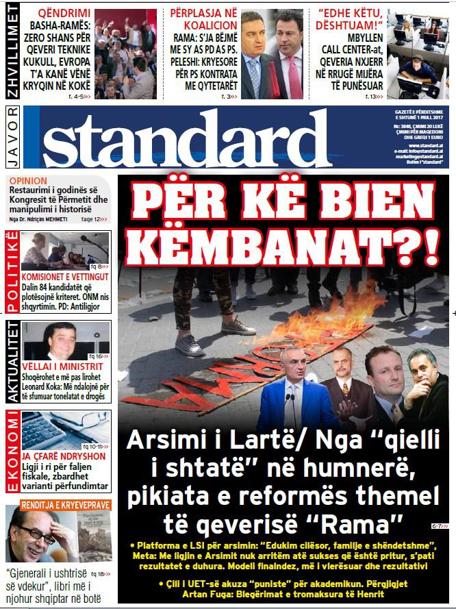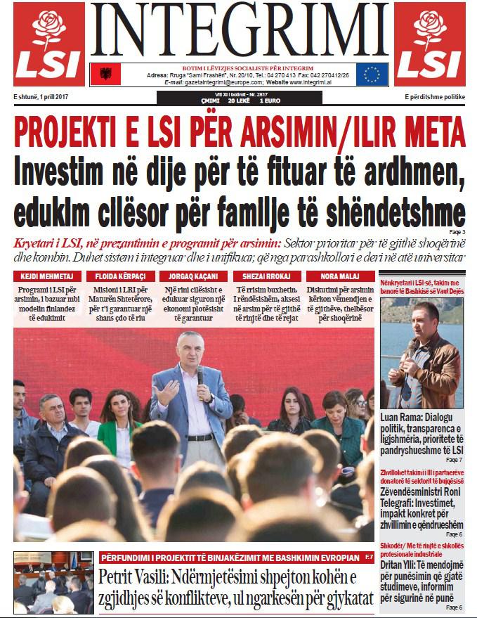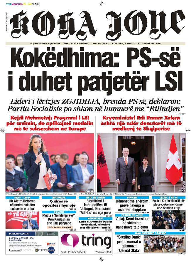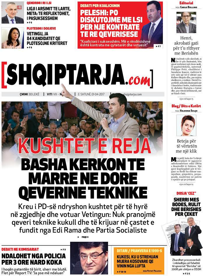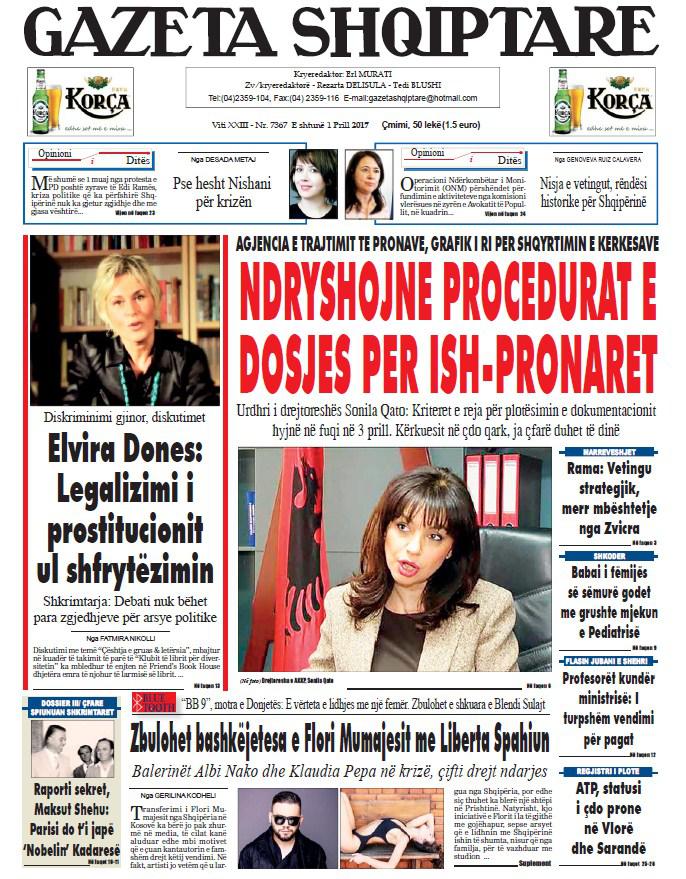Të nderuar lexues, kjo është një pasqyrë e faqeve të para të disa prej gazetave kryesore, për ditën e shtunë, 1 prill 2017.
