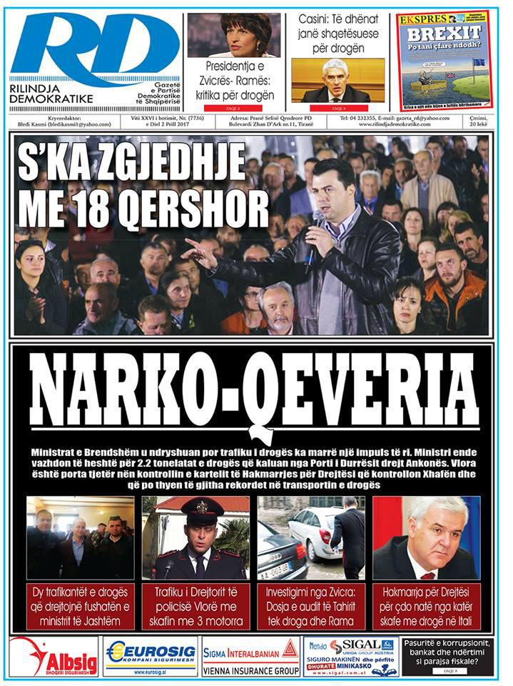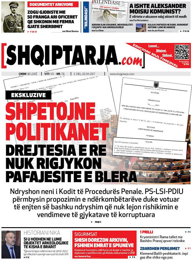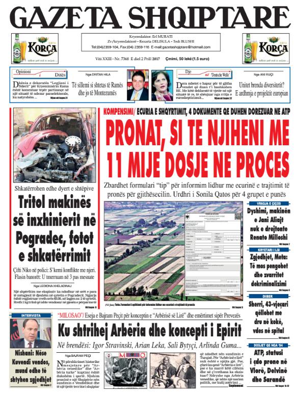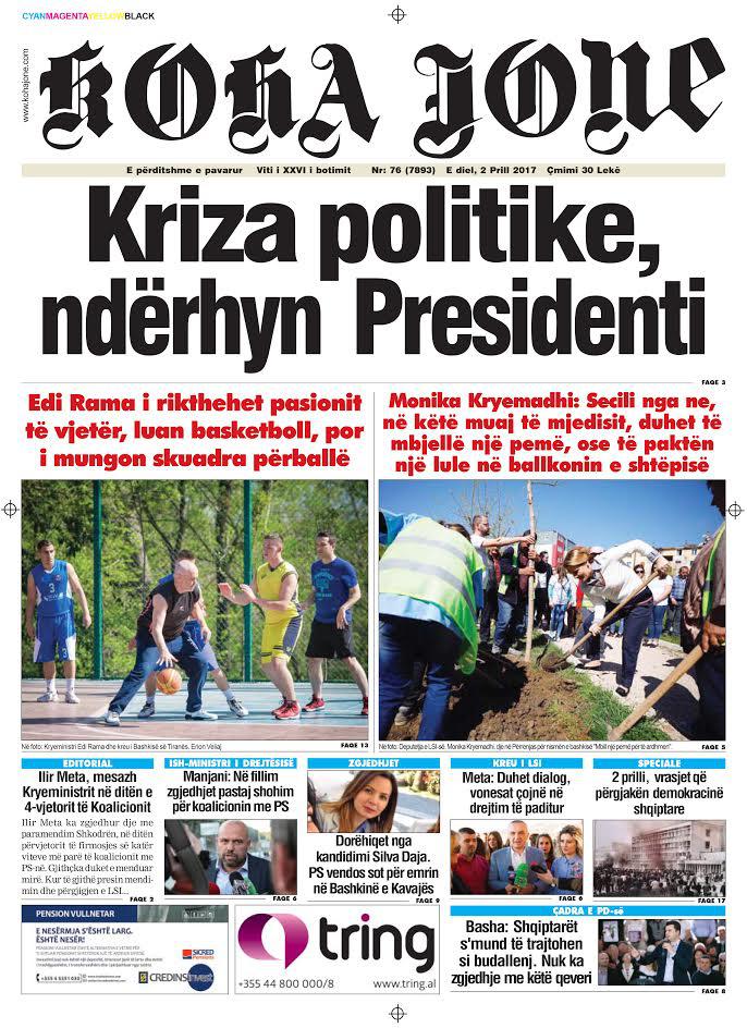 Të nderuar lexues, kjo është një pasqyrë e faqeve të para të disa prej gazetave kryesore, për ditën e diel, 2 prill 2017.
