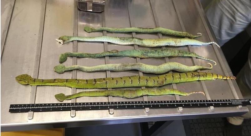 Autoritetet kufitare vendosën ta skanonin me rreze X dhe sigurisht që brenda pakos ata nuk gjetën këpucë, por një përzierje krijesash helmuese si gjarpërinj, merimanga e akrepë.