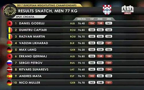 Në provën e tretë Daniel Godelli arriti të ngrejë 161 kg në stilin e shkëputjes duke i dhënë Shqipërisë një triumf që na bën krenarë.
