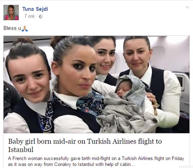 Një franceze ka lindur një vajzë ndërsa ishte duke udhëtuar me avion në linjën Conakry – Stamboll. Diaby Nafi-t, me origjinë nga Guinea, por me nënshtetësi franceze, i filluan dhimbjet e lindjes menjëherë pas nisjes nga kryeqyteti i Guinea, Conakry.