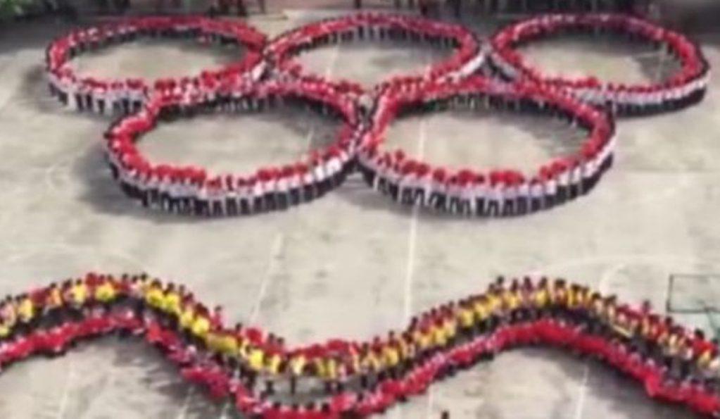 Koreografia me 300 fëmijë kinezë arrin që të krijojë një spektakël. Disiplina e tyre të mahnit dhe fëmijët janë të gjithë nxënës të një shkollë fillore.