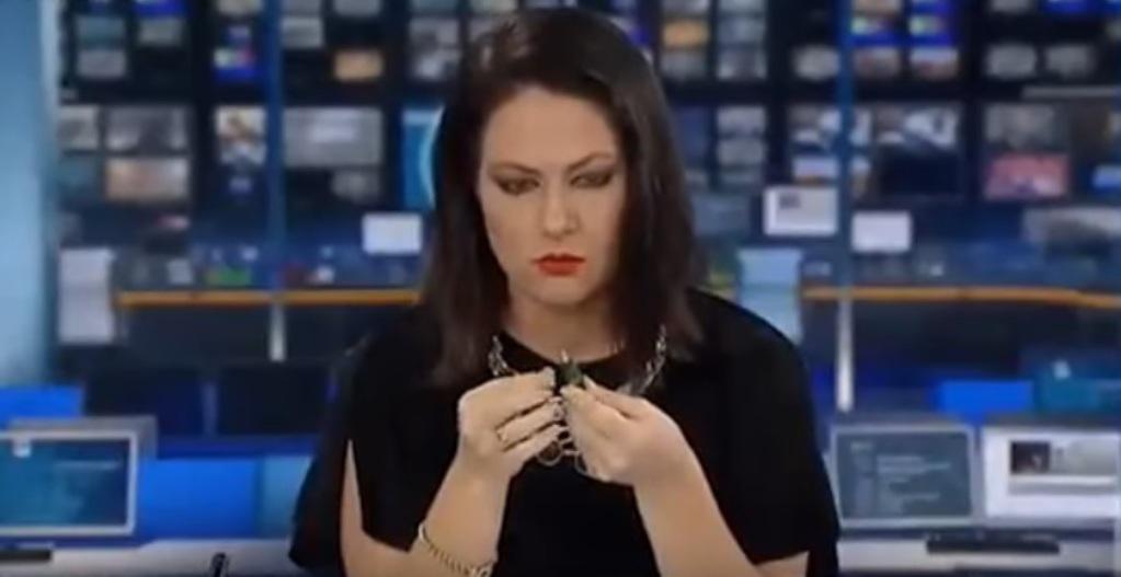 Kur e kuptoi që kishte hyrë në transmetim, ajo hapi sytë dhe gojën e shokuar, lëshoi stilolapsin dhe prezantoi kronikën e radhës.