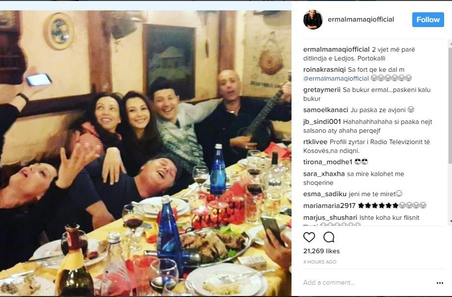 Moderatori i njohur ka shpërndarë një foto ku shfaqet përkrah miqve të tij më të mirë, aktorë të këtij programi. Fotoja është shkrepur 2 vite më parë në ditëlindjen e Ledio Lakos. Ermali i ka ruajtur miqësitë dhe marrëdhëniet me ish-kolegët.