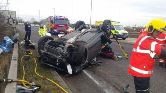 Si pasojë automjeti ka fluturuar në ajër duke u përplasur në një rrethrrotullim në Peterborough, në Britaninë e Madhe.