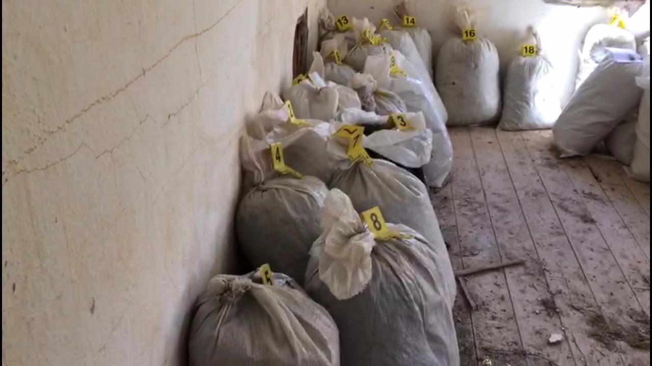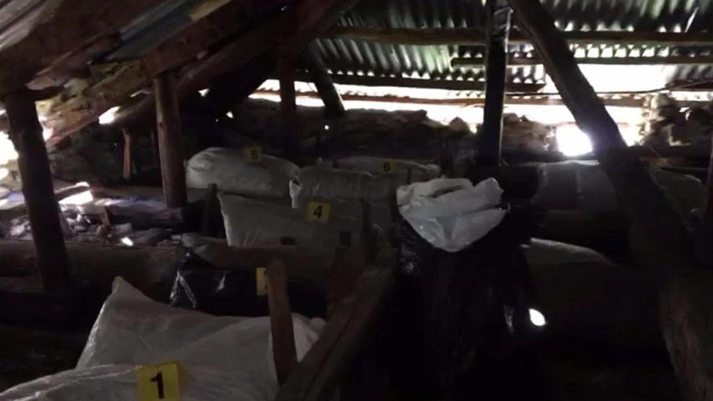 Në pjesën e tavanit të banesës dykatëshe të braktisur u konstatuan dhe u sekuestruan 28 thasë të mbushur me rreth 120 kilogramë kanabis sativa.
