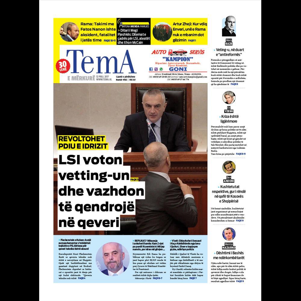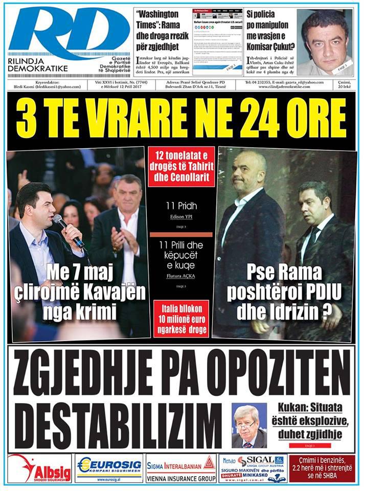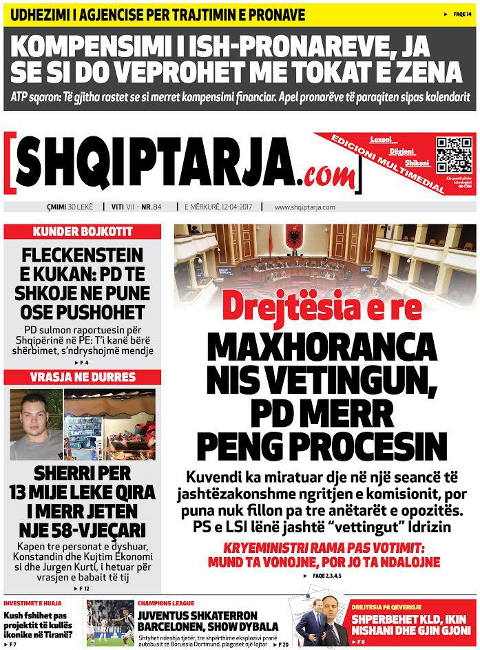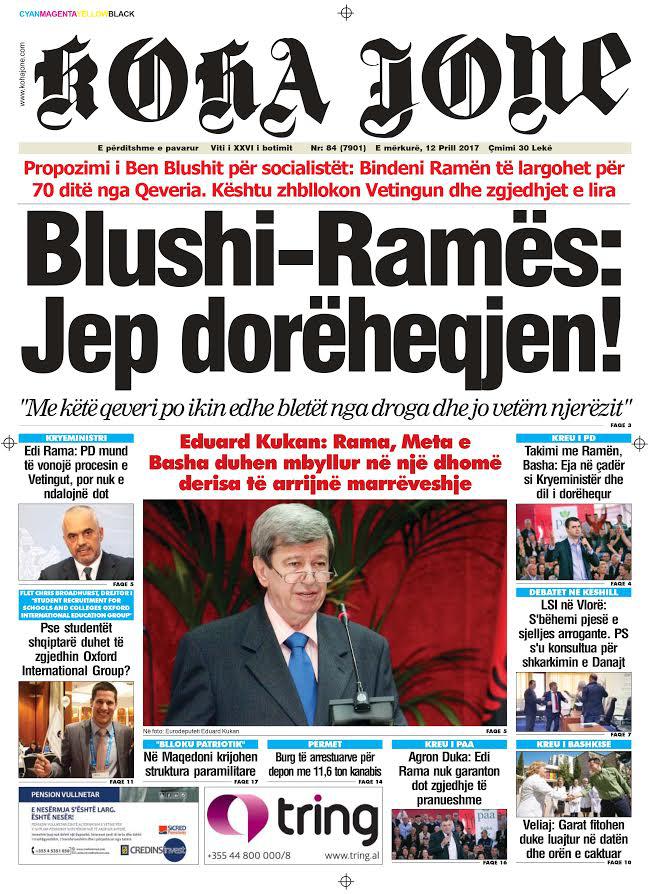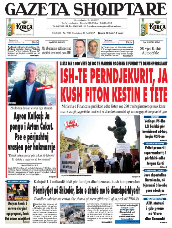Të nderuar lexues, kjo është një pasqyrë e faqeve të para të disa prej gazetave kryesore, për ditën e mërkurë, 12 prill 2017.