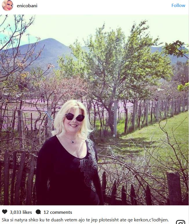 “S’ka si natyra shko ku të duash vetëm ajo të jep plotësisht atë që kërkon, çlodhjen,”-shkruan Eni Çobani krahas një fotografie të postuar në Instagram./a.k/noa.al/