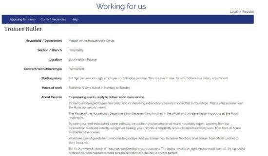 Oferta duket tunduese, por siç lexohet në lajmërimin e publikuar në sajtin e Royal Household, ka disa gjëra që nuk janë pëlqyer fort. Ndër të tjera pushimet janë të paguara, ashtu sikundër është i përshirë edhe qëndrimi në Buckingham Palace.