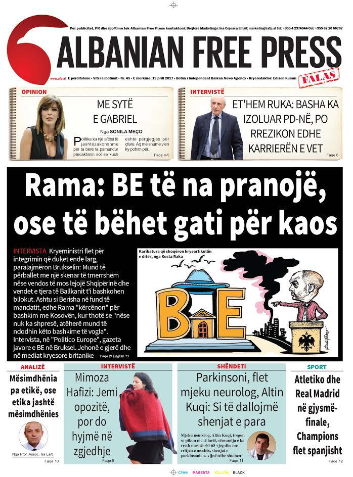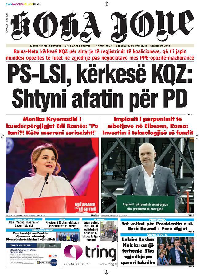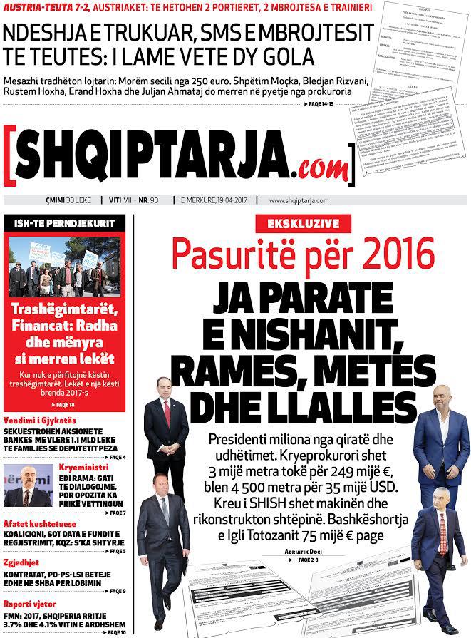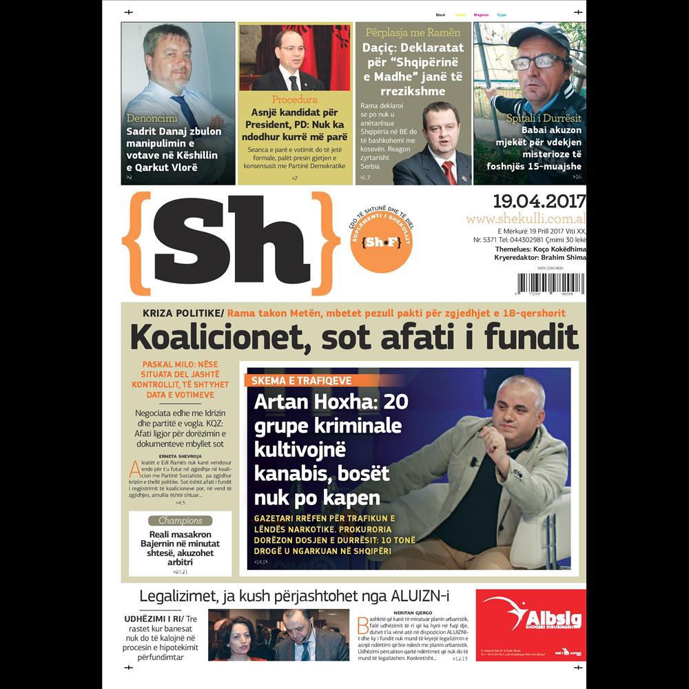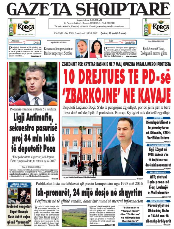 Të nderuar lexues, kjo është një pasqyrë e faqeve të para të disa prej gazetave kryesore, për ditën e mërkurë, 19 prill 2017.