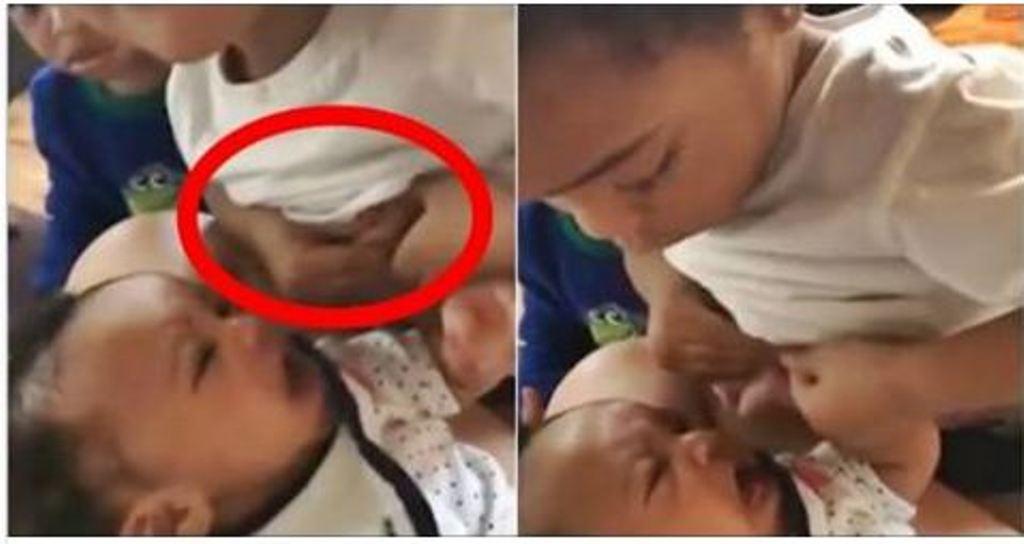 E pabesueshme! Për djalin, forma për ta qetësuar motrën është duke i drejtuar gjoksin që të pijë. Dhe ai këtë bën. /k.k/noa.al/