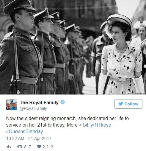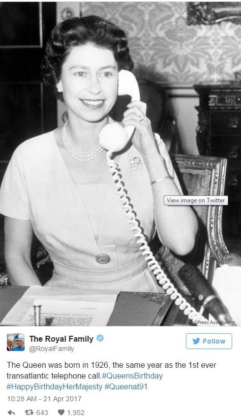 Sovrania angleze festoi ditëlindjen, ku me rastin e përvjetorit të saj profili në Twitter i familjes mbretërore angleze u mbulua me tullumbace me ngjyra.