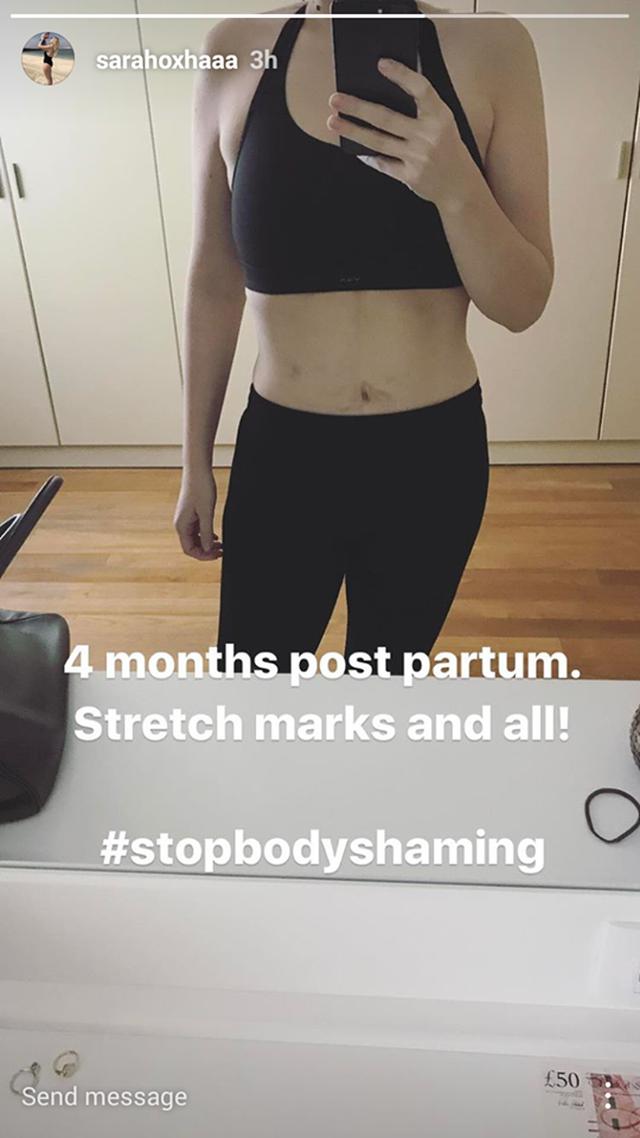 Në vazhdën e të qenurit femër si të tjerat dhe duke dashur të japë mesazhin e saj, ajo ka thënë që fillimisht strijat do i lërë aty, kurse sot ka publikuar një foto ku i dallohen disa shenja në bark.
