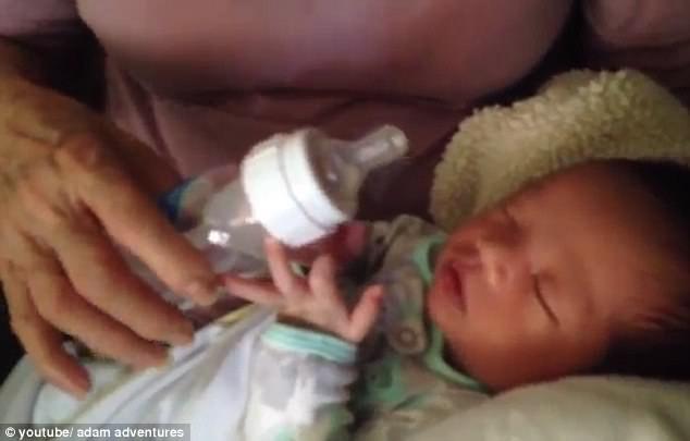 Siç shihet edhe në video janë vetëm duart e vogla të foshnjës dhe goja e tij e uritur që mbajnë biberonin në ajër.