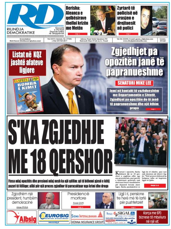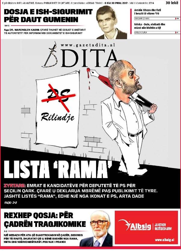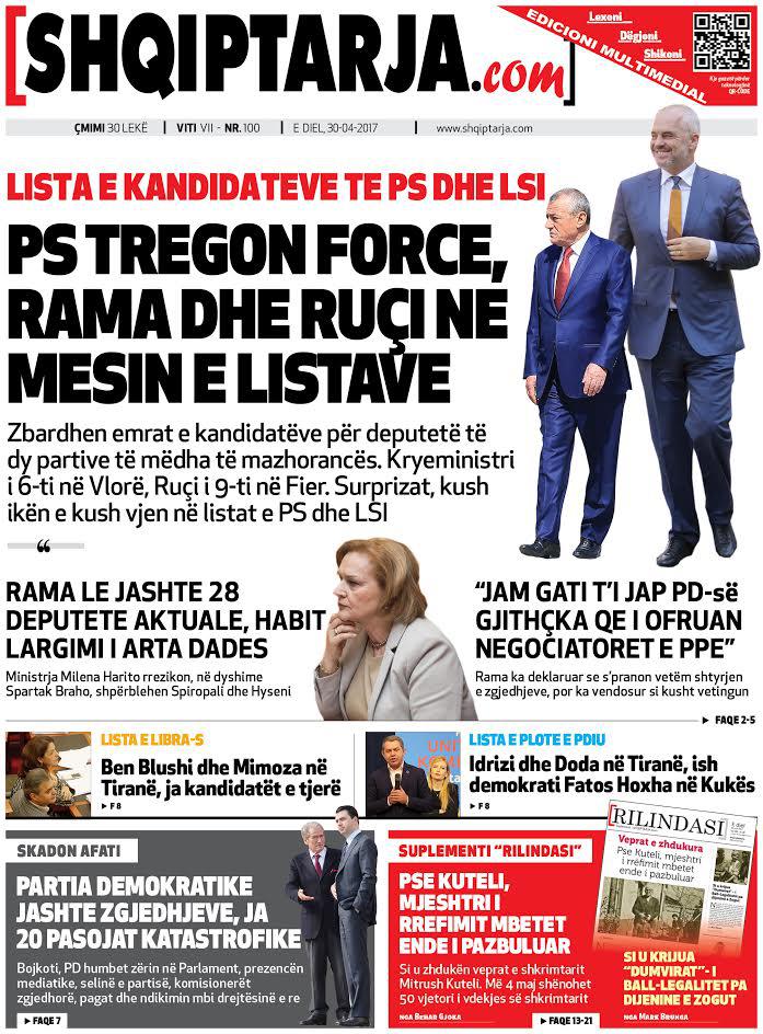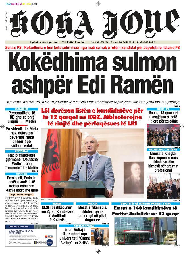 Të nderuar lexues, kjo është një pasqyrë e faqeve të para të disa prej gazetave kryesore, për ditën e diel, 30 prill 2017.