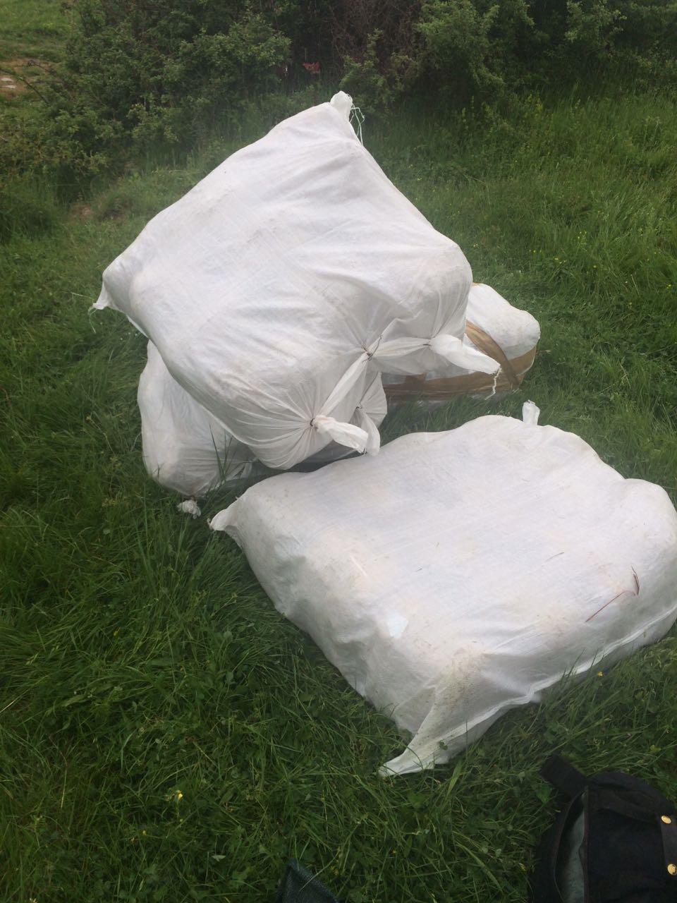 Po në vijim të kontrollit të zonës, në afërsi të automjetit janë gjetur dhe sekuestruar 4 thasë, ku brenda tyre kishte 15 pako më lëndë narkotike , gjithësej rreth 105 kilogramë Marijuanë.