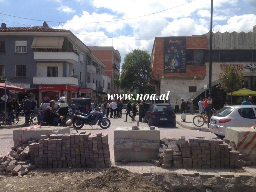 Rreth orës 10:12 një telefonatë e mbërritur në policia njoftoi për një pako të dyshimtë me lëndë eksplozive që ishte vendosur poshtë mjetit tip Golf me targa Aa 774nk. Menjëherë policia rrethoi zonën pranë “Teatrit Skampa”.