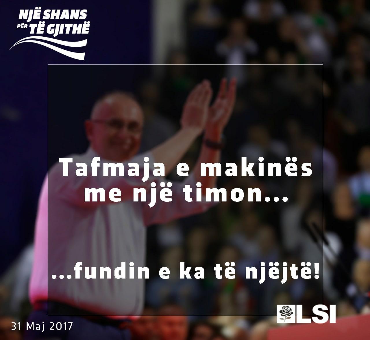Ishte ish-ministri i Brendshëm, Saimir Tahiri, i cili gjatë një takimi elektoral në Petrelë ku prezantoi kandidatët e PS, për deputetë tha se makinë me dy timonë nuk mund të ketë, duke i’u referuar LSI. /a.y/noa.al
