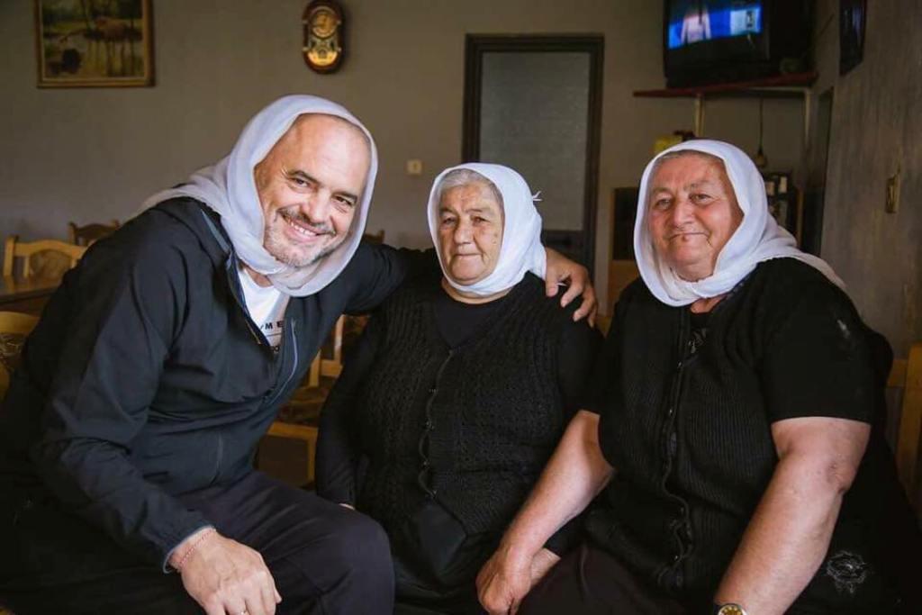 Ai së fundmi ka postuar një fotografi ku shfaqet me dy zonja të moshuara me shami të bardhë, ku pranë tyre qëndron edhe kryeministri, i cili ka vendosur në kokë shami njësoj si ato.