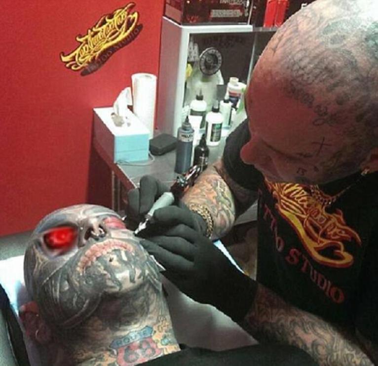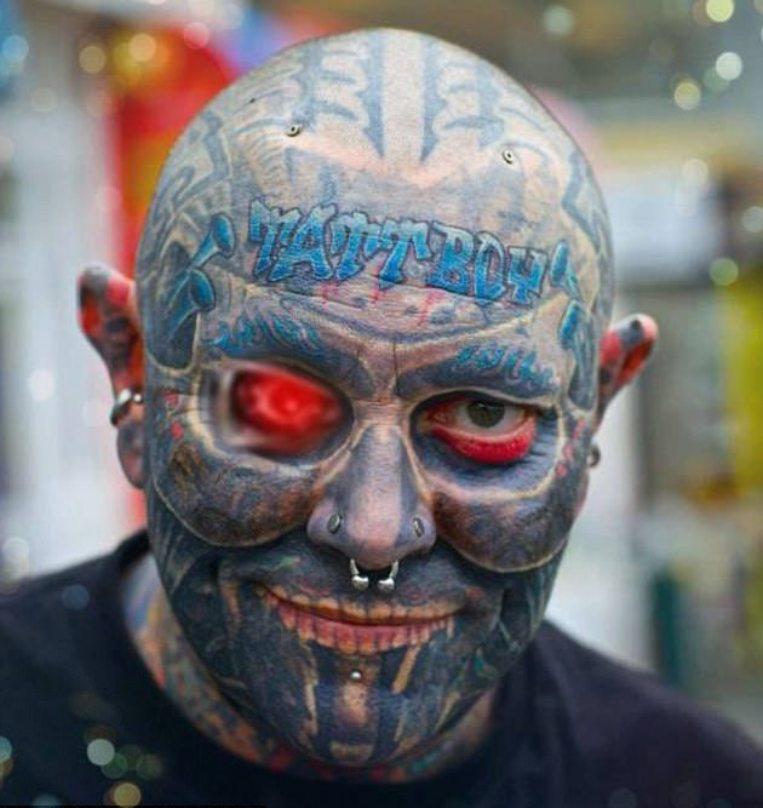Një burrë ka mbuluar të gjithë trupin e tij me mijëra tatuazhe. Dhe sikur të mos mjaftonte kjo, ai ka bërë edhe një tatuazh në sy duke e ngjyrosur me bojë të kuqe.