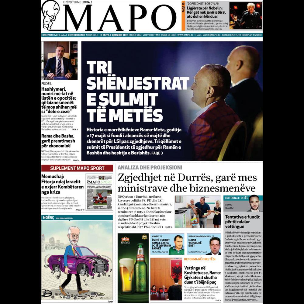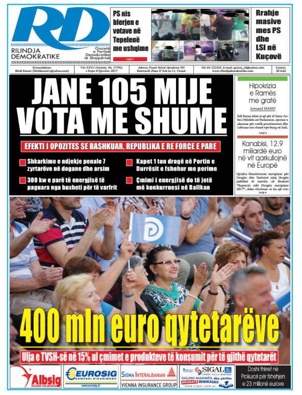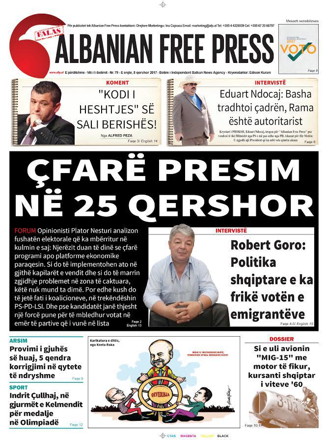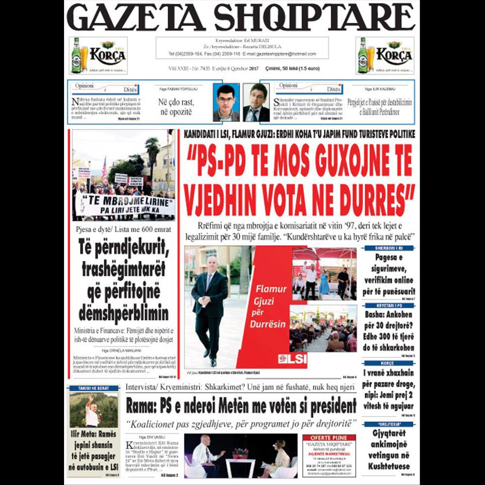 Të nderuar lexues, kjo është një pasqyrë e faqeve të para të disa prej gazetave kryesore, për ditën e enjte, 8 qershor 2017.